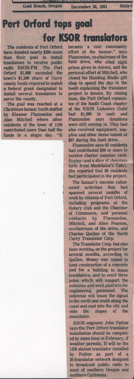 ksor port orford history 1981