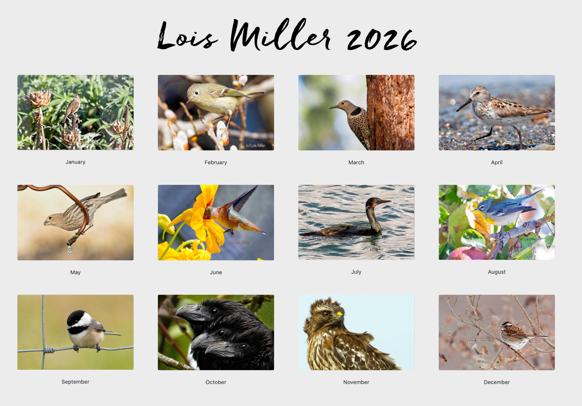 The Lois Miller Memorial Calendar was created per Lois's wish to celebrate and share her artwork with the community and the world.