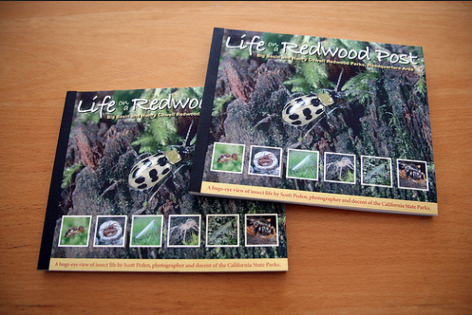 Project Description: “Life on a Redwood Post” is a bugs-eye view book of insect life by Scott Peden, photographer, plant expert and docent of the California State Parks. With 135 color photographs and anecdotes from the author, the book provides an informed and entertaining journey through the microscopic life of the insects living on any of the seven posts outside of Henry Cowell State Park Headquarters.