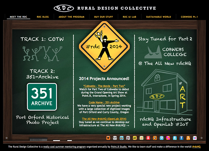 Project Description: In 2013, Point.B Studio and The Rural Design Collective moved into a historic old building in Port Orford, OR. In celebration, The Rural Design Collective launched a new site design to mark the beginning of a new era and the opening of their media lab on the second floor. The site has been the online home of #rdcHQ for five years and the content is currently preserved in an archive state.